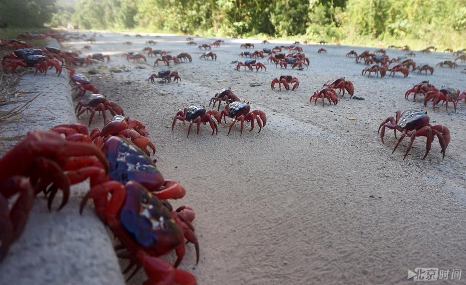 圣诞岛红蟹是生活在澳大利亚属印度洋岛屿——圣诞岛上的一种陆蟹,每年10月底,在热带雨林气候的雨季来临之前,红蟹就开始了艰苦的长途跋涉,集体迁往海边产卵。在迁徙途中,红蟹群密集地布满去往海岸的路面。为保护红蟹安全迁徙,圣诞岛上的居民可谓费尽心思。