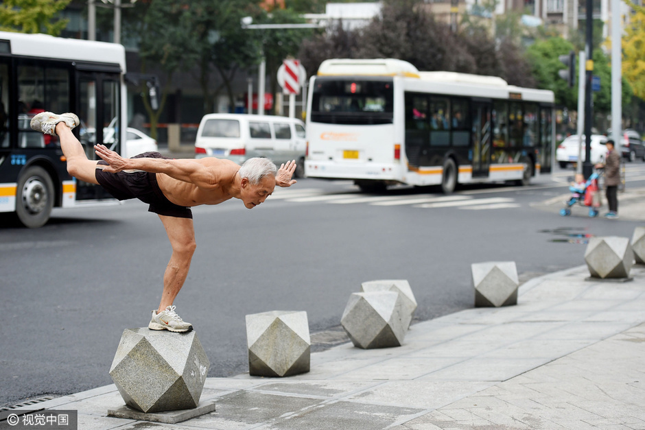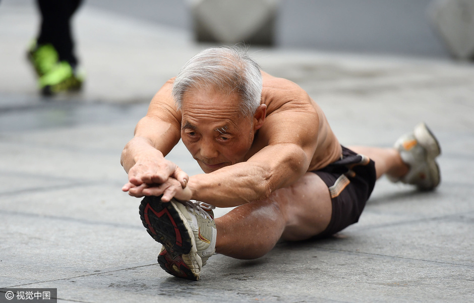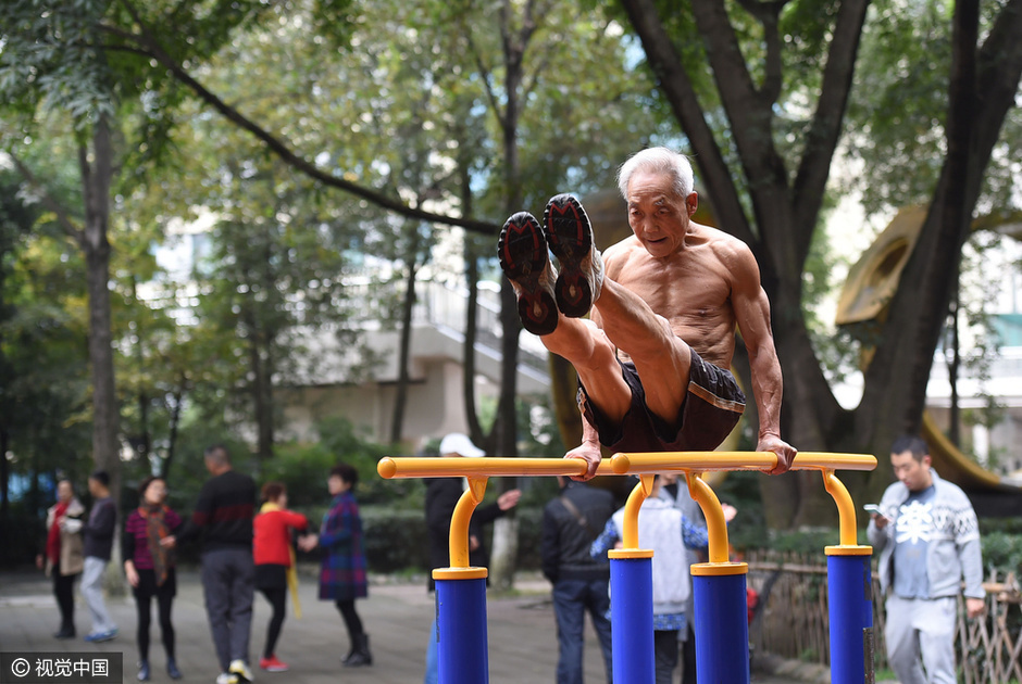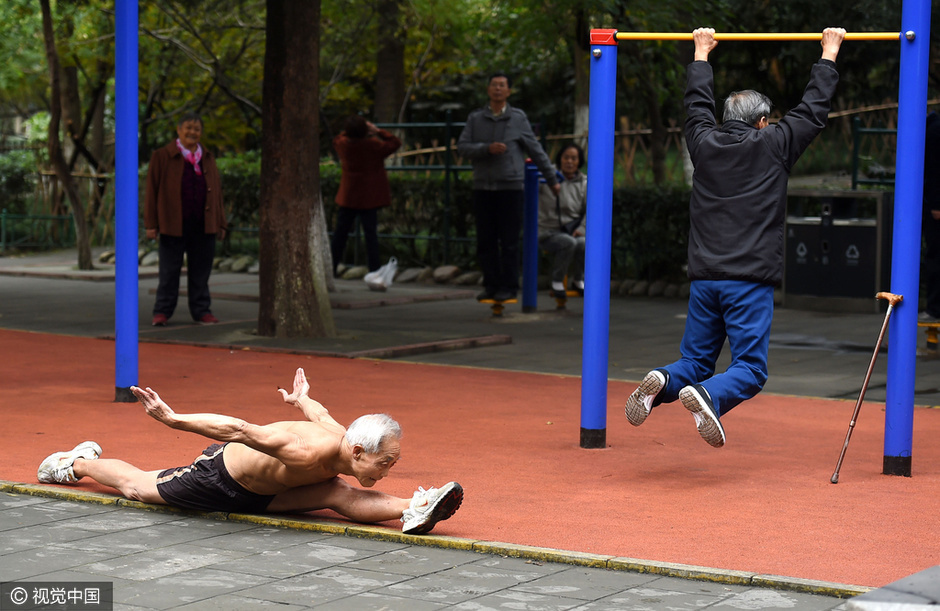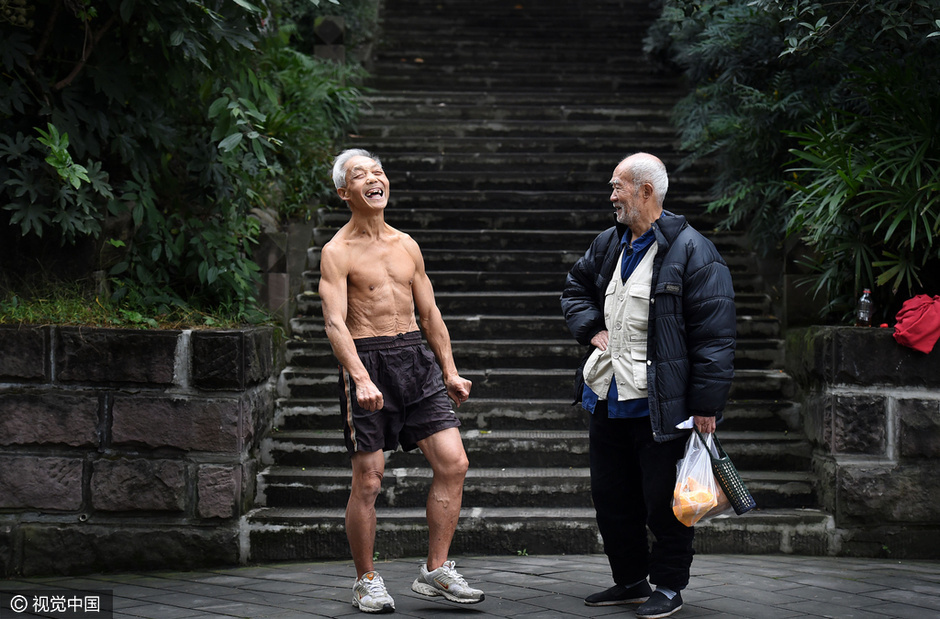 立冬以来,成都气温较为寒冷,很多市民穿起了羽绒服,但是郑大爷却赤裸上身锻炼。
