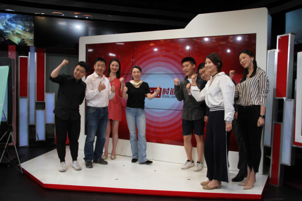 播音主持艺术学院副书记王群,播音主持艺术学院新闻系副主任翁佳以及上一届两位获奖选手吴泽华、叶若汐一起做客“北京时间”,现场启动开幕仪式。
