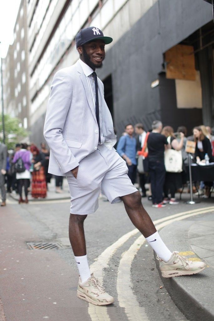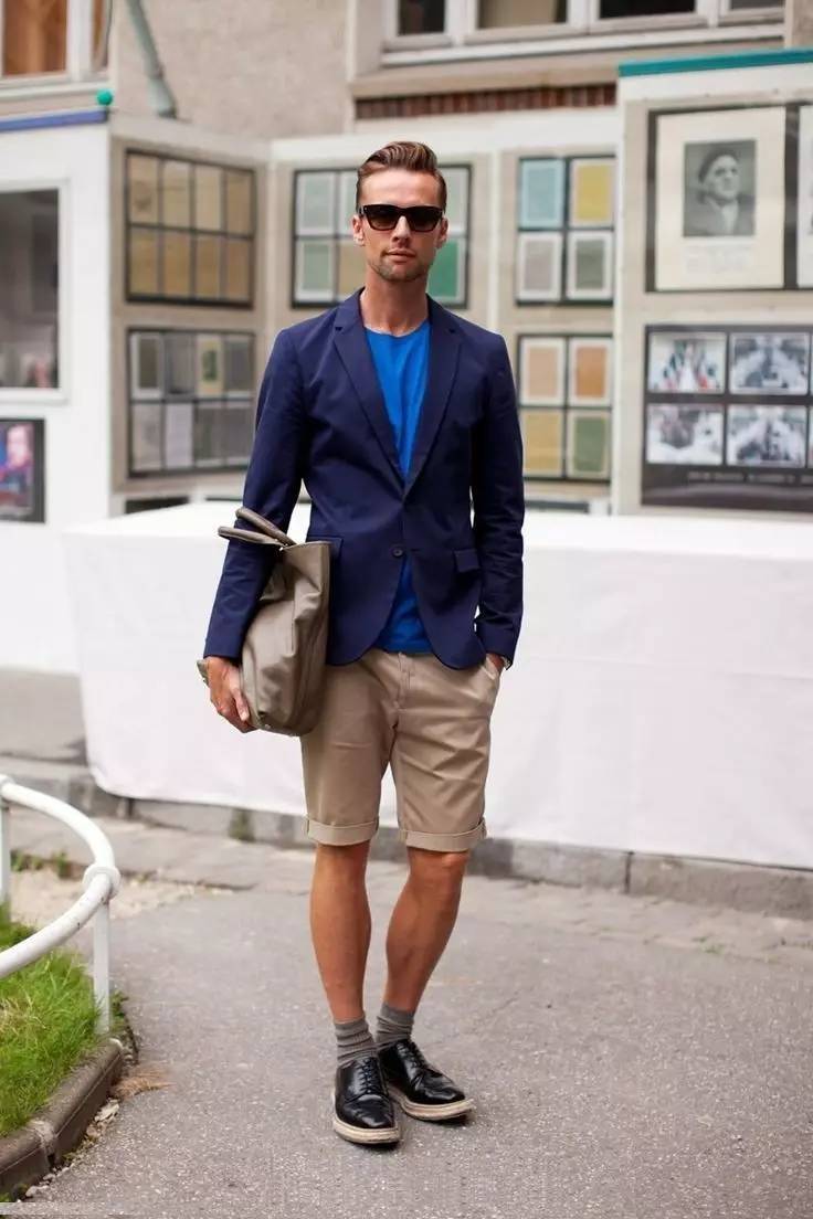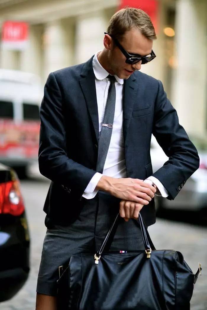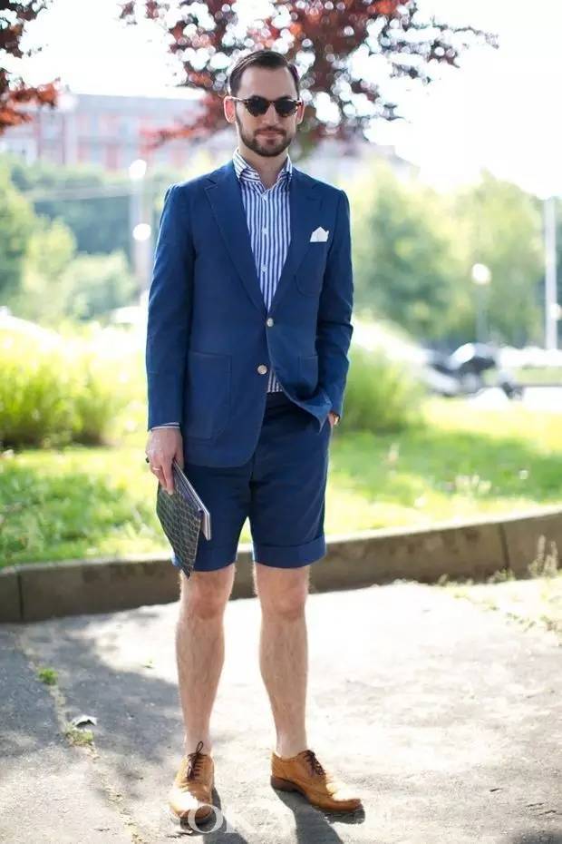 男人们不妨来一套短裤+西装的行头,你可以选择中规中矩的套装,也可以来一个blazer与短裤的混搭。