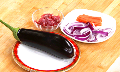 食材:茄子 胡萝卜 洋葱 牛肉馅