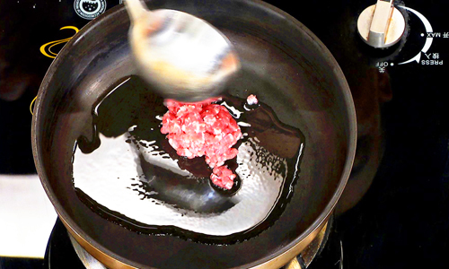 步骤2:锅中放入底油,放入牛肉馅煸炒,成熟后盛出备用。