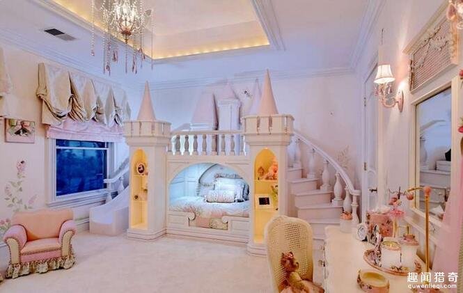 这个房间的造价为70000美元(48万人民币),里面不仅有人造宝石镶嵌的表演舞台,还有树屋小阁楼,仅仅一块地毯就价值20000美元。