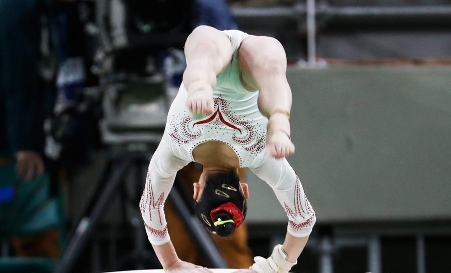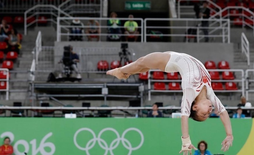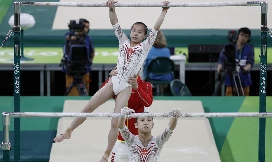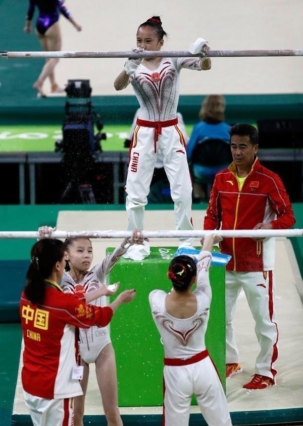 北京时间2016年8月5日,里约,中国女子体操队在比赛场地实地积极训练备战,她们期待能在里约获得好成绩。