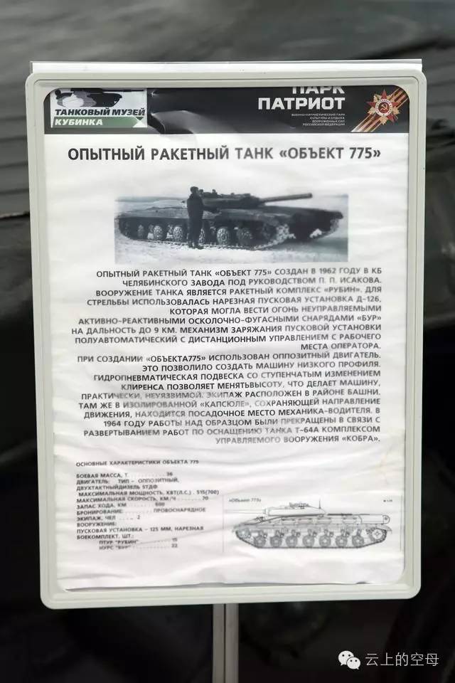这种坦克仅造几辆,下马原因有很多,比如视野不好、总体设计复杂、导弹可靠性不高。现在,很多国家都研制出了炮射导弹,而775工程算是比较早的一个尝试吧。