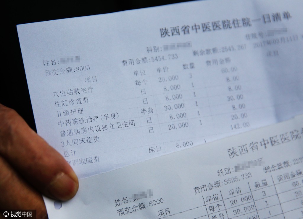 孟大爷的老伴在陕西省中医医院住院,这些天来,孟大爷给医院交费时,发现里面还有一项“厕所费”,每天收8元钱。