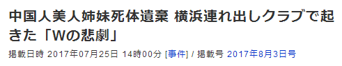 遇害中国籍姐妹花生前曾在日本一家以性交易为主的夜总会中兼职,每晚标价4万日元(约合人民币2400元),附近人称她们为“风姿绰约的中国美女姐妹”。