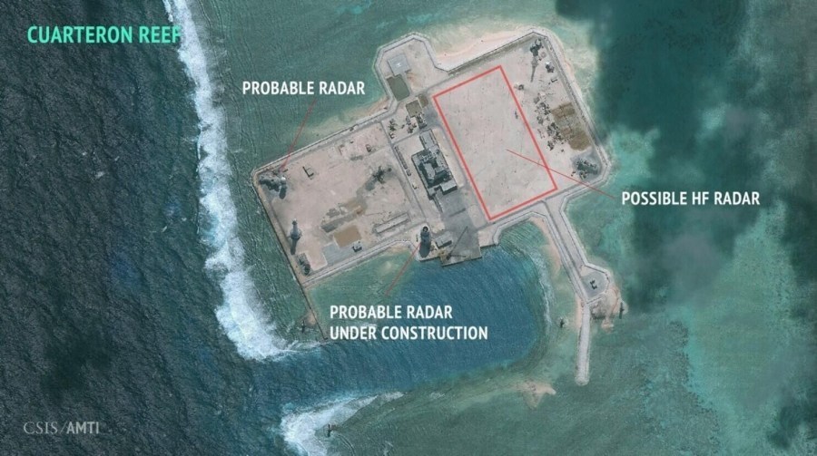 日本共同社2月23日报道称,美国智库“战略与国际研究中心”(CSIS)22日透露,根据对卫星图片的分析,中国有可能正在南沙群岛的华阳礁(Cuarteron Reef)新建雷达设施。