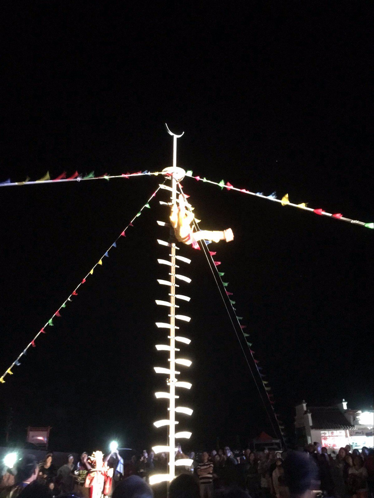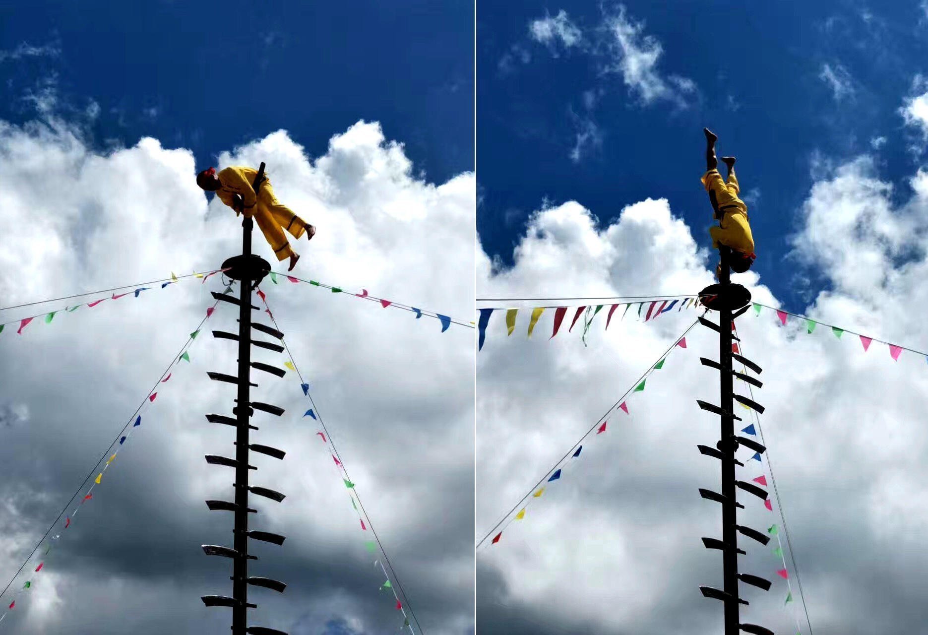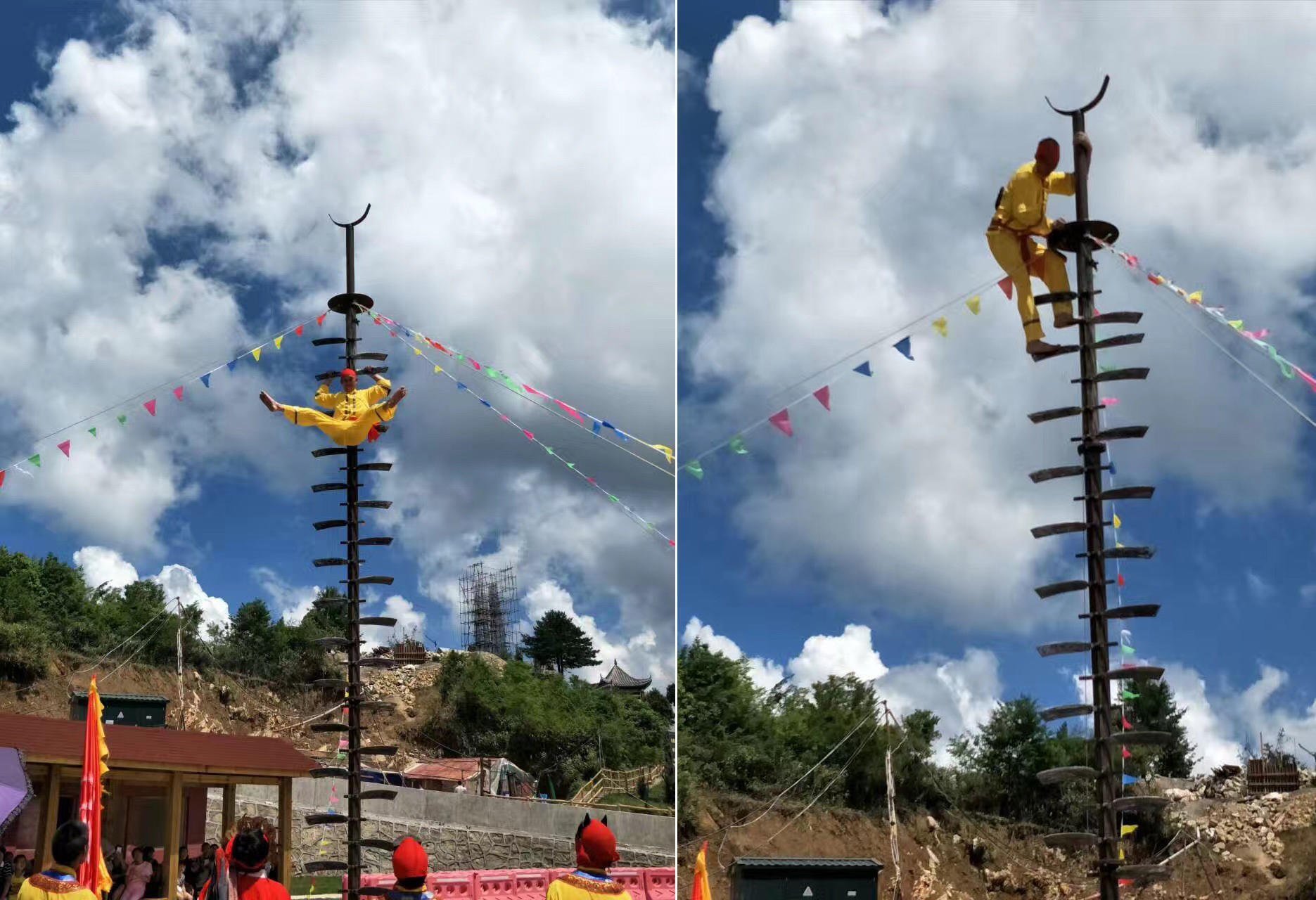 四川省万源市境内举行了一场“上刀山、下火海”的傩技表演,傩师们“赤脚上阵”的真功绝招,让每一位在场观众惊心动魄。