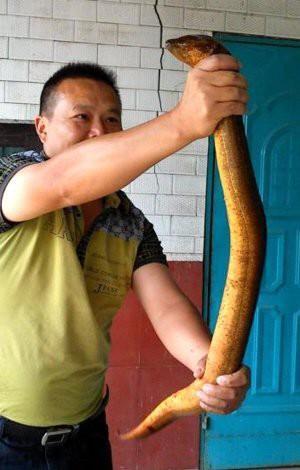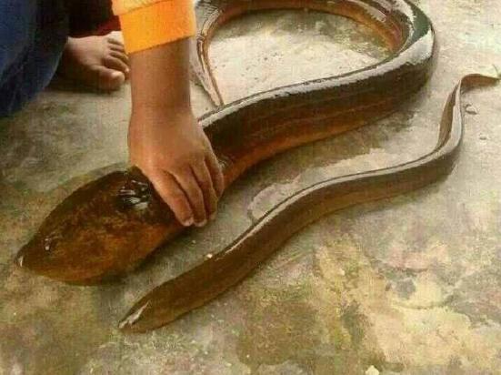 其实大鳝鱼在民间钓鱼也有人碰到过。有两位大哥就曾抓到过超过一米的大黄鳝。