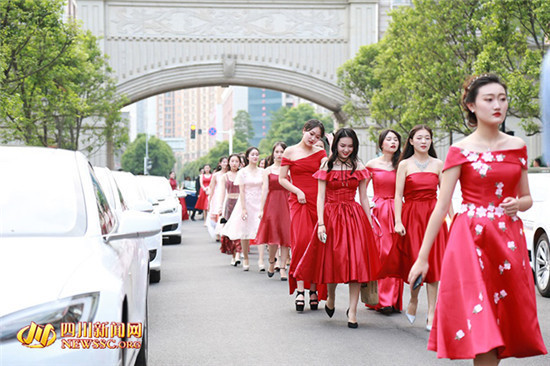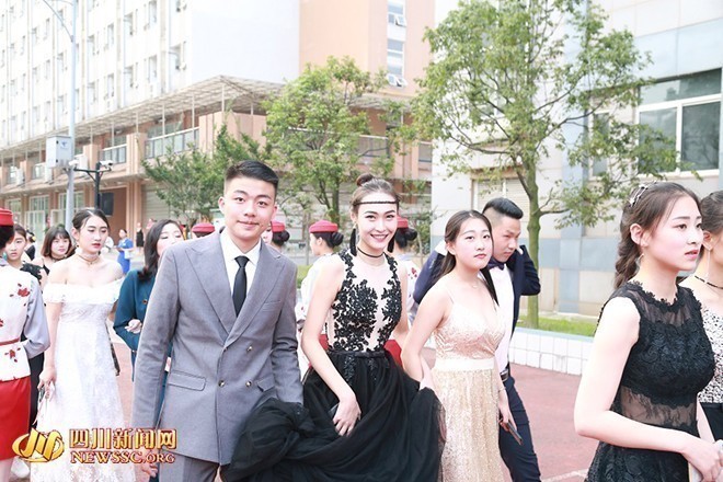 6月19日晚,成都航空旅游职业学校空乘专业部举行的主题为“爱尚蓝天 梦享空乘”的毕业舞会,现场阵势不输戛纳电影节。