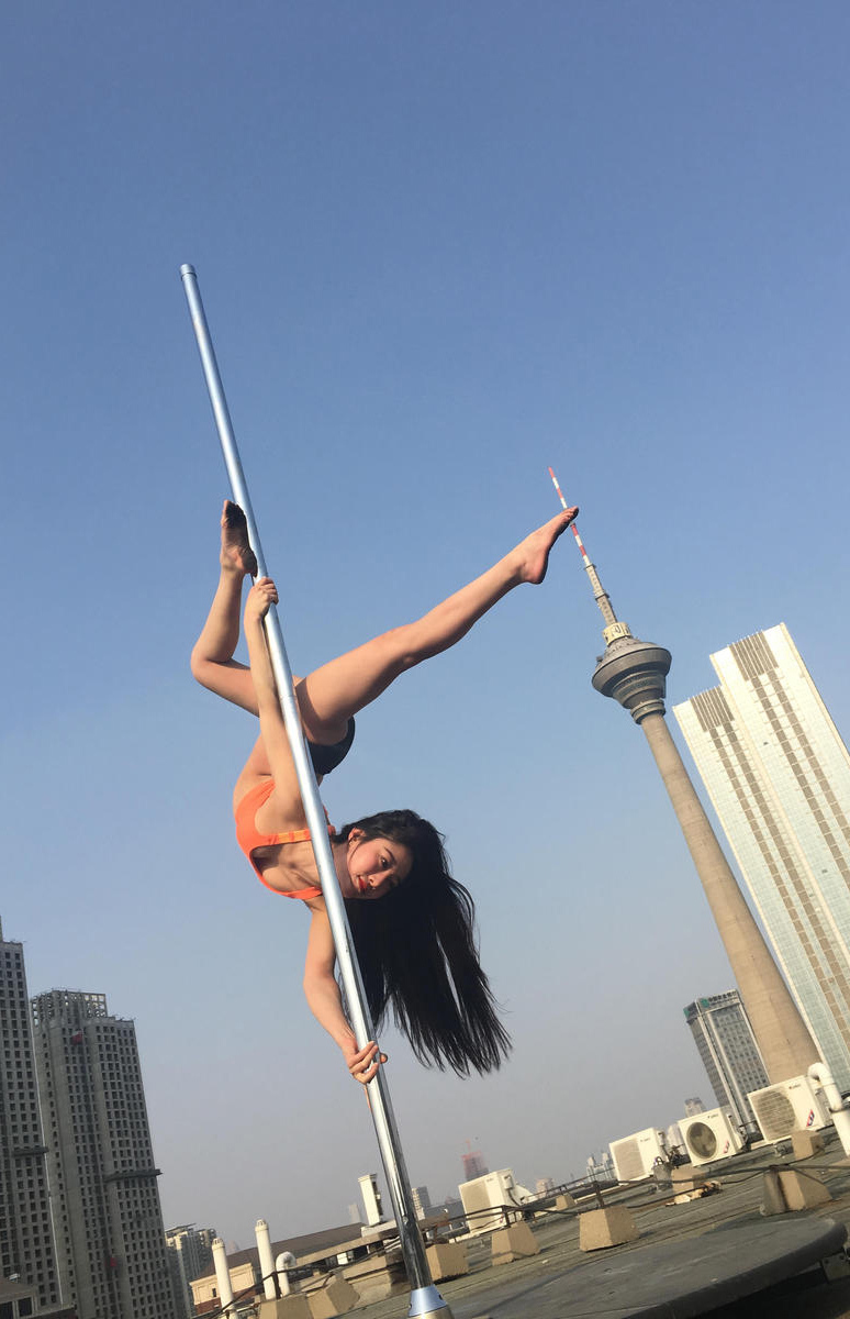 钢管舞天团成员王小羽,为宣传钢管舞免单日玩大招。