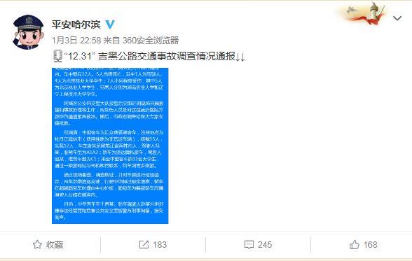 哈尔滨通报北林大学生车祸事件:涉事车辆均超速 两车主被刑拘