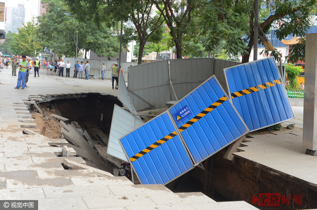 8月23日15时许,兰州市城关区繁华路段的张掖路步行街城隍庙附近人行道发生路面塌陷,2人掉入坍塌区。