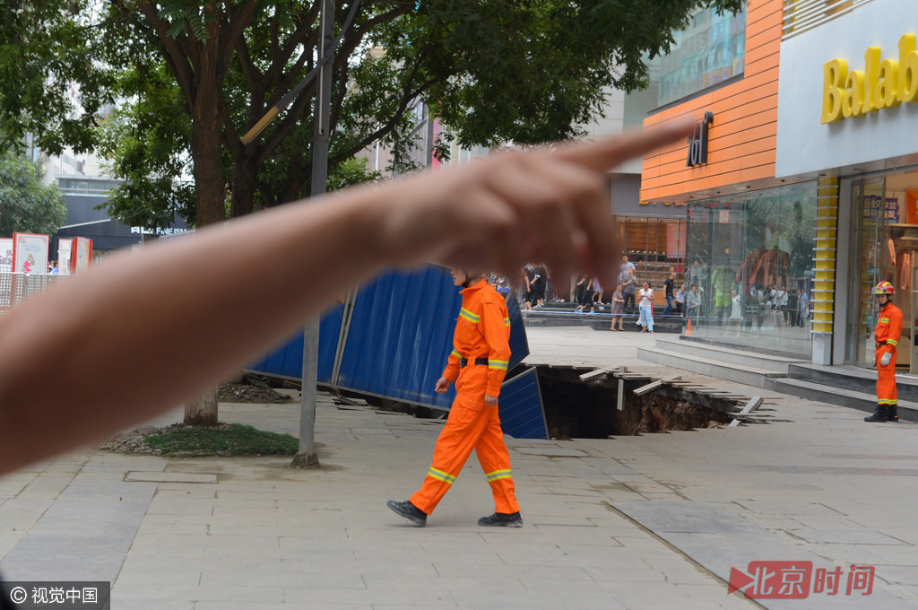 “当时,我正在打电话,突然听见咚得一声,路面塌陷下去一大块,街上的群众纷纷散开,长约四五米的塌陷区内除了掉落下去的地板、沙土,还有一个粗水管,其它空空的,估计是水管开裂了。”其中一名参与救援的男性市民告诉记者。