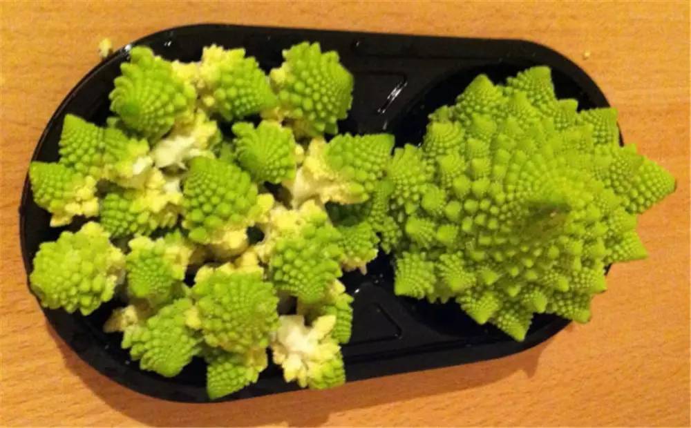 一个像宝塔,长相特别,花球表面由许多螺旋形小花组成,小花又以花球中心为对称轴成对排列的蔬菜,它的名字叫罗马花椰菜。