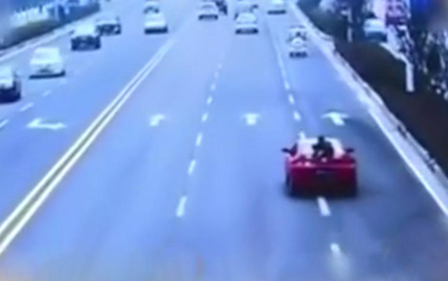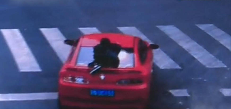 近日,江苏沭阳县一对情侣在争吵后,女方失控爬上私家车车尾,男方则不顾女友安危,继续开车狂奔。