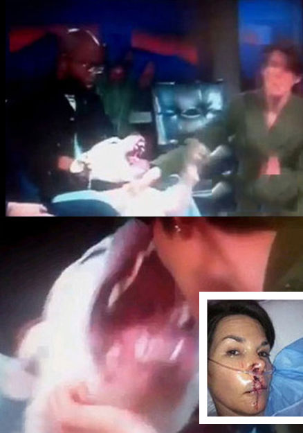 2012年2月,美国丹佛市一家电视台的女主播在电视直播节目中突然遭到现场的“嘉宾狗”攻击,在众多观众面前被咬伤。此案中的“嘉宾狗”名叫“麦克斯”。作为烈犬的麦克斯在直播过程中突然对女主持人戴尔发动攻击。整个攻击过程也被现场直播给所有收看节目的观众。图为主持人被狗“袭击”。