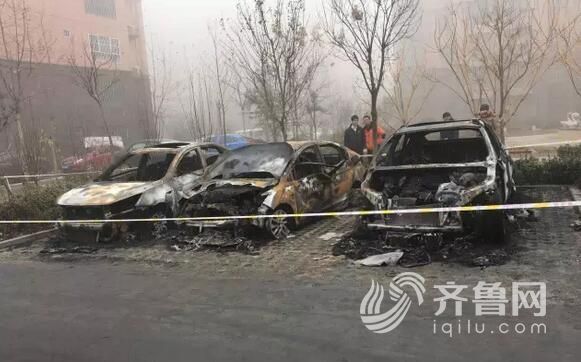 早晨六七点钟,有居民发现,停在小区楼下的几辆汽车着火了。小区居民表示,当时听见响,还以为撞车了,一看原来是车着了,赶紧喊救火。