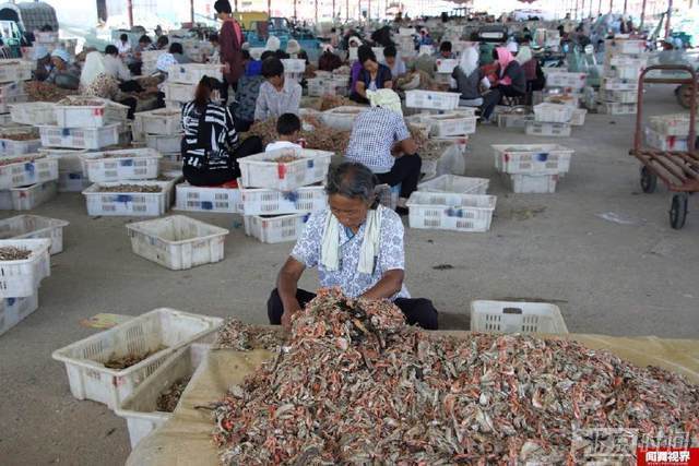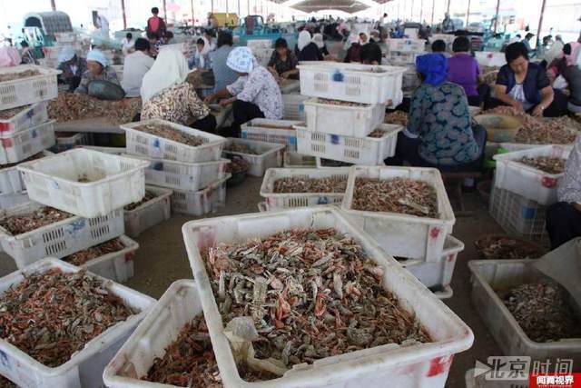这里是全国最大的海产品集散地之一,由于海上运来的货通常是鱼、虾、蟹等海产品混杂,需要由人工进行分拣。从事这项工作的多数是中老年农村妇女,分拣一斤4毛钱,每人每天大约拣50斤左右仅赚20元,中午吃饭手都顾不上洗,就在工位上就着海货啃个干馒头,手上留下的腥味洗好久都洗不掉。