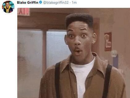 而当格里芬知道自己被交易后,他更新了推特,发表了一个表情包,图中威尔-史密斯张开嘴巴,表达着一脸的不可思议。