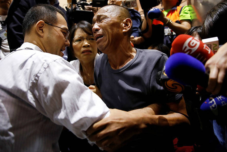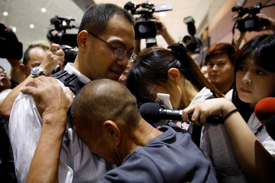 台湾被劫船员返台,跪谢救命恩人家属。