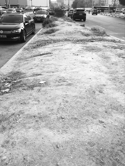 广和里中街的南段,路中间的绿化带有二三十米长的区域内缺少绿化,长期荒芜,黄土裸露,一遇大风天气,裸露的绿化带便扬起尘土,影响了周边环境。