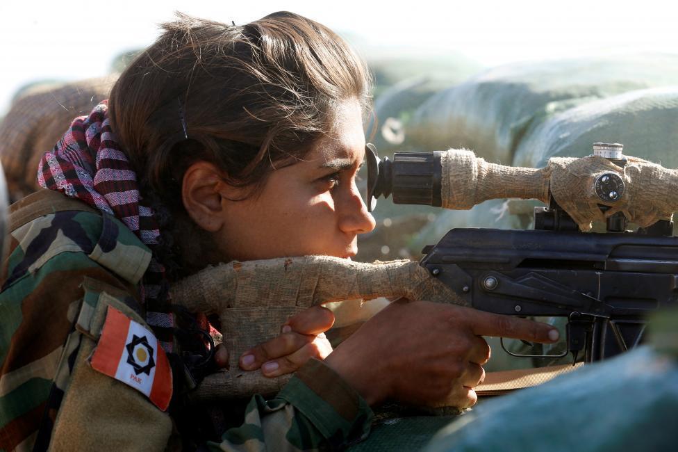 外媒称,在伊拉克军队与库尔德民兵解放摩苏尔的战役中,参加战斗的还有伊朗库尔德女子民兵队。
