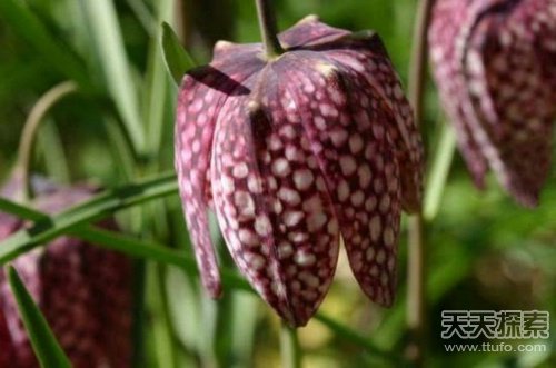 贝母的名字来源于拉丁文,意思是股子盒,原因是它不同寻常的低垂形状和格子的图案,也是因爲这个原因,这款花卉又被称爲国际象棋花。