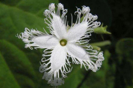 这种奇妙的蕾丝花可以长得很长,有著蛇型水果的花, 原产于南亚,位于全球比较温暖的区域。果实和藤茎都是可以食用的。