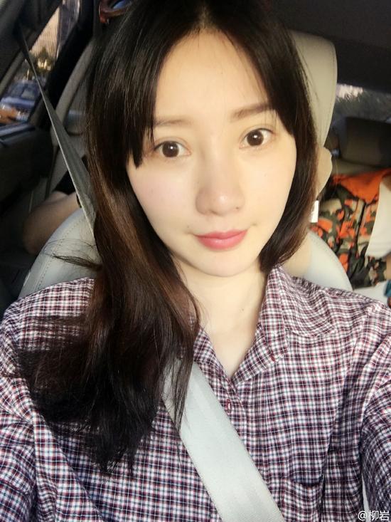 5月7日,柳岩微博晒出一张自拍照,她素颜出镜,着格子衫胸前平坦。