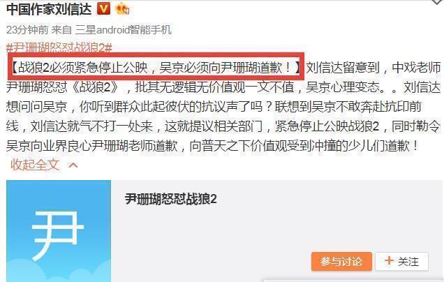 吴京今日下午刚回应完中戏老师尹珊珊,而且对于中戏老师尹珊珊给《战狼2》的差评。