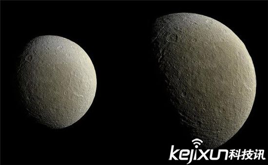 乍一看这颗银色星球很像我们的月球,不过它离我们非常遥远,在14亿公里之外。它是土星的第二大卫星“瑞亚”(Rhea),中文俗称土卫五。