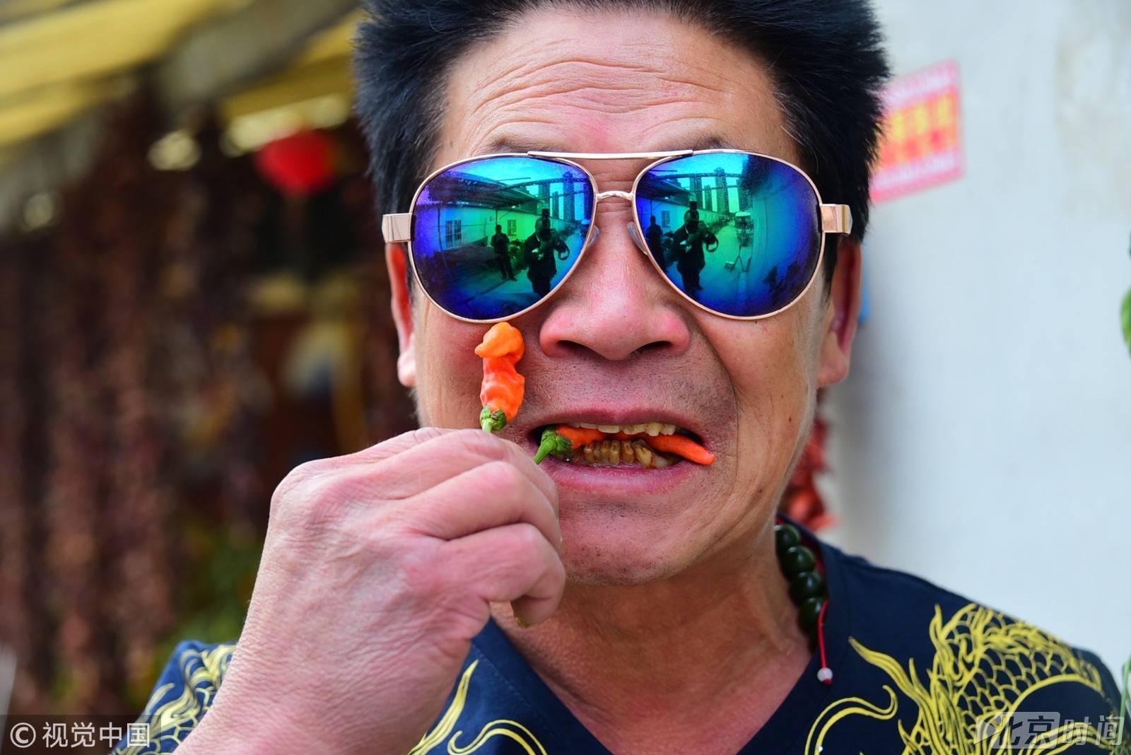 家住新郑市龙湖镇沙窝李村的李永志酷爱吃辣椒,一天三顿饭中可以没肉、没鸡蛋,但绝不能没有辣椒,尤其是他把辣椒、大蒜、白酒配在一起吃,让许多自认为能吃辣的人都自叹不如。