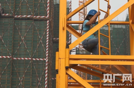 成都双流郊外的工地上,塔吊有30多米高,周艳沿着阶梯一级一级往上爬。在顶部的控制室里,她操纵着机器,开始一切建设,底下高楼逐日升起。