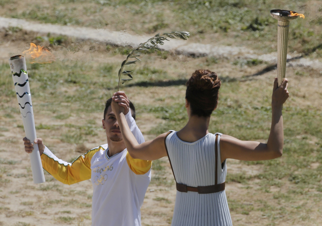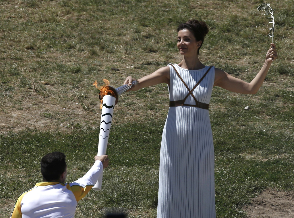 当地时间4月21日,2016里约奥运会奥运圣火采集仪式在希腊雅典举行。