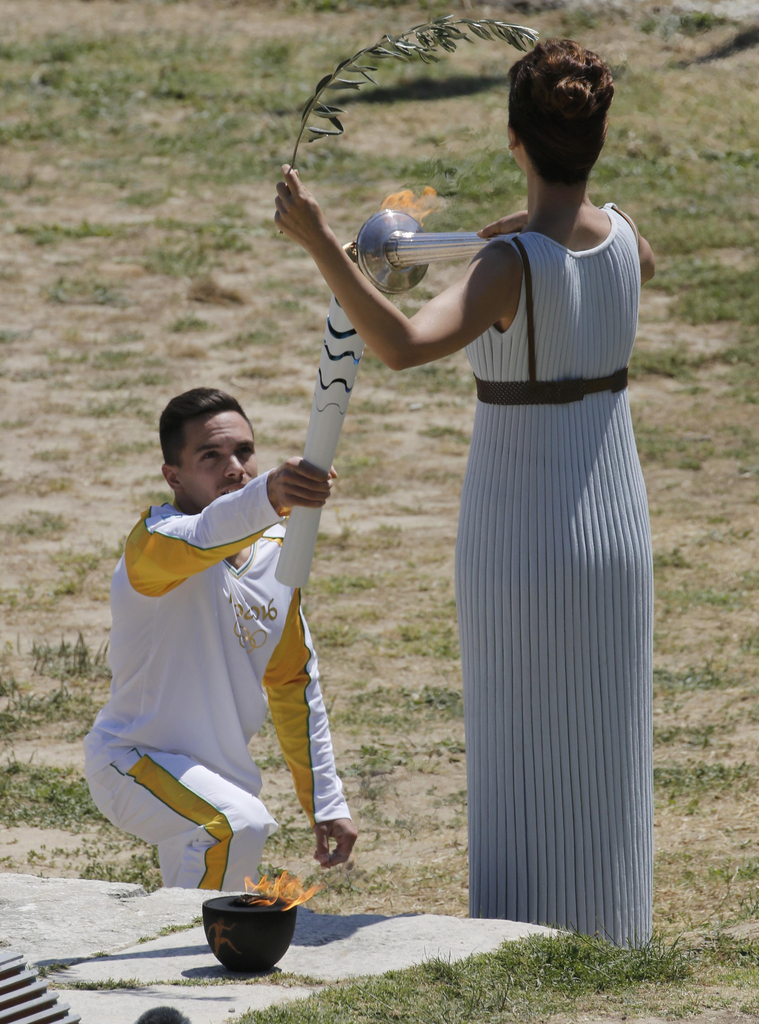 当地时间4月21日,2016里约奥运会奥运圣火采集仪式在希腊雅典举行。