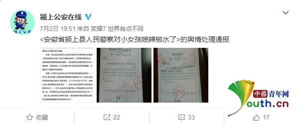 此事实为民警处置颍上县“瀚海御水兰庭”小区业主维权事件时,未要求现场无关人员躲避,使得现场一女孩被扩散开的催泪瓦斯伤到眼睛。