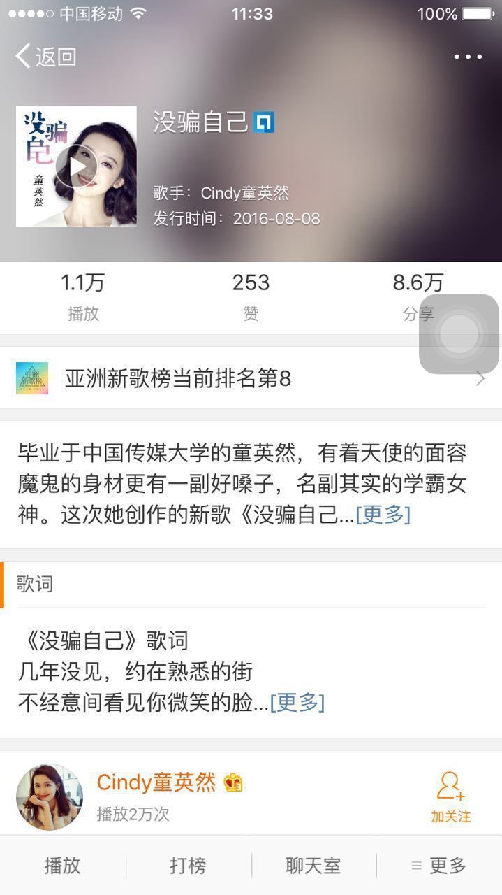 只是一个素人歌手在新歌首发后便能冲进亚洲新歌榜前十名,由此可见歌曲的故事歌曲的旋律和歌曲所传达出来的含义击中了网友们的心。