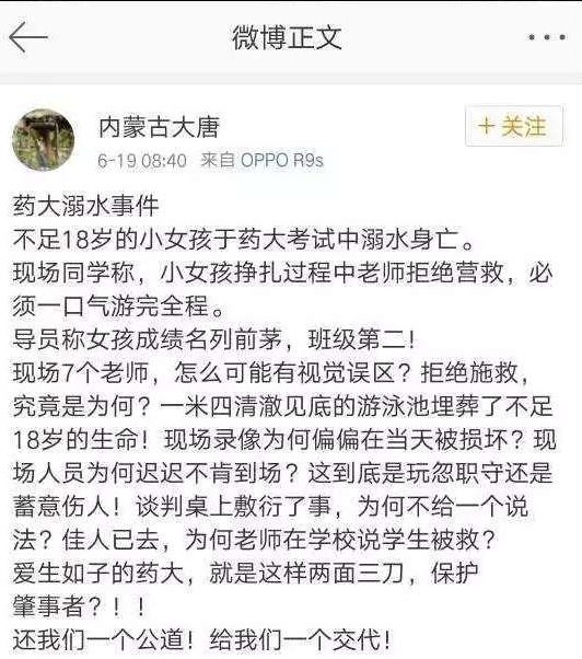6月16日,中国药科大学学生丁梦佳在学校进行游泳考试时溺水身亡,6月19日,该消息被爆出后,引起网友多方关注。