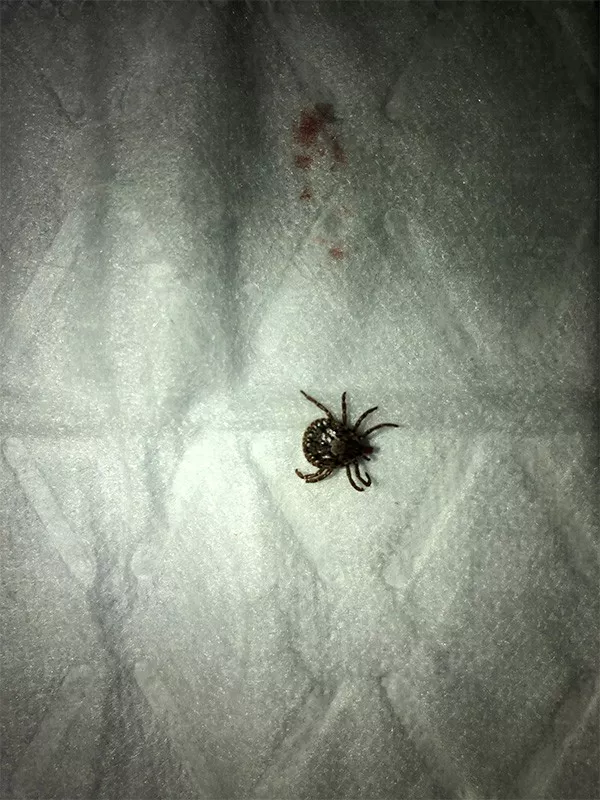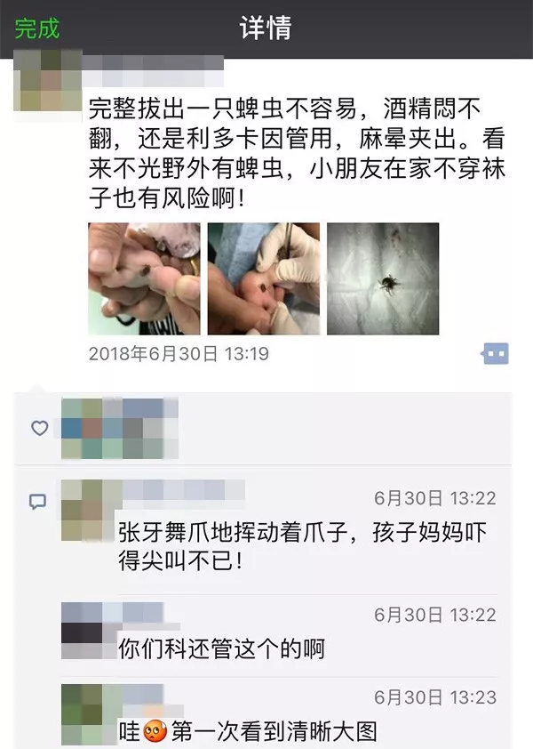 上周六下午1点多,浙江大学医学院附属儿童医院皮肤科医生郑磊发了这样一条朋友圈:“完整拔出一只蜱虫不容易,酒精闷不翻,还是利多卡因管用。看来不光野外有蜱虫,小朋友在家不穿袜子也有风险啊!”