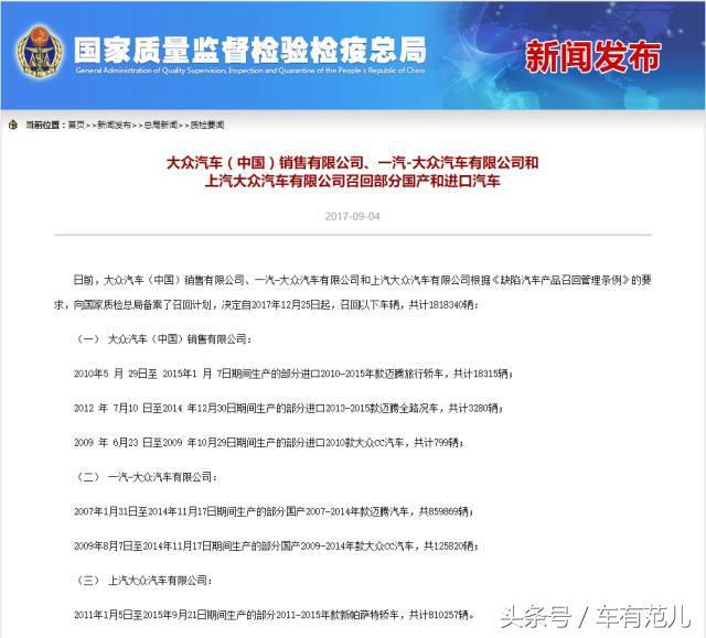 素有“神车”之称的大众在排放门之后又招上事了,史上最大量汽车召回事件的桂冠又被大众摘走了。范儿先带大家看看大众的红头文件啊,之后再细说到底怎么回事。
