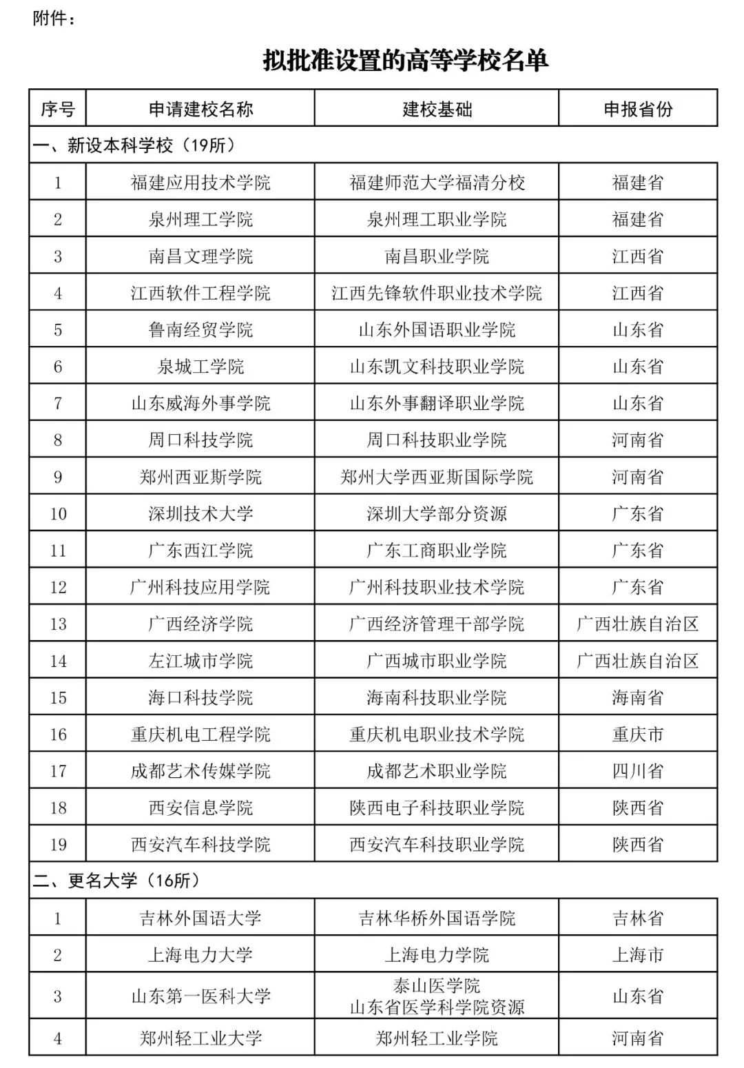 5月31日,教育部发展规划司正式公示了新一轮新设置的高等学校名单。40所省级人民政府申报设置的高等学校获得通过,快看你的家乡有几个?