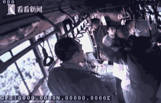 监控显示,一名男子上了公交车后,发现另一个男子,两人好像互相认识一样,一见面说了两句话就开始大打出手。