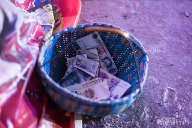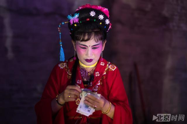演出接近尾声,两个黄梅戏演员拿着篮子,跪地讨钱,边讨边唱,仅得到200多元,还被一位观众摸手了半分钟左右!
