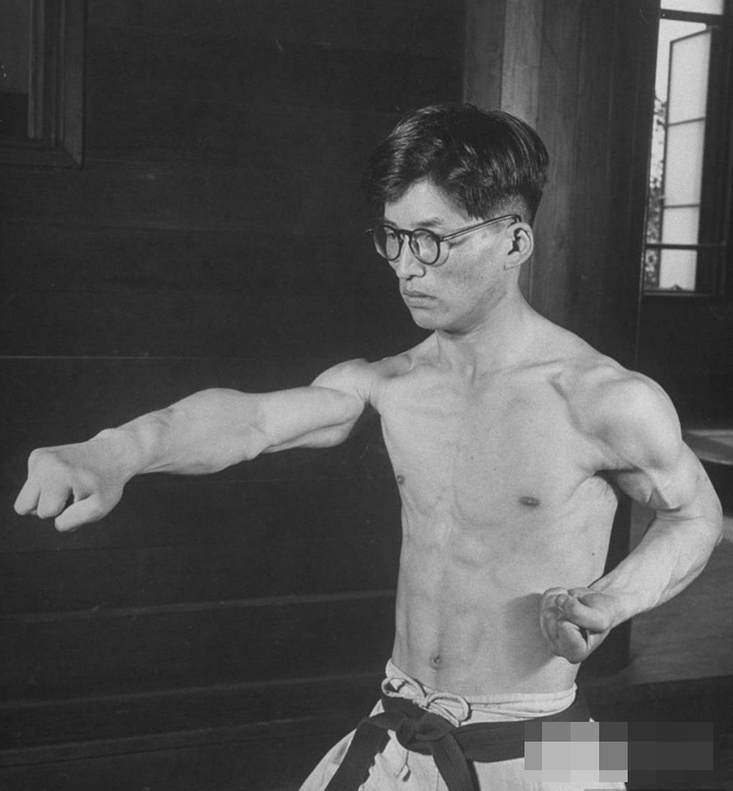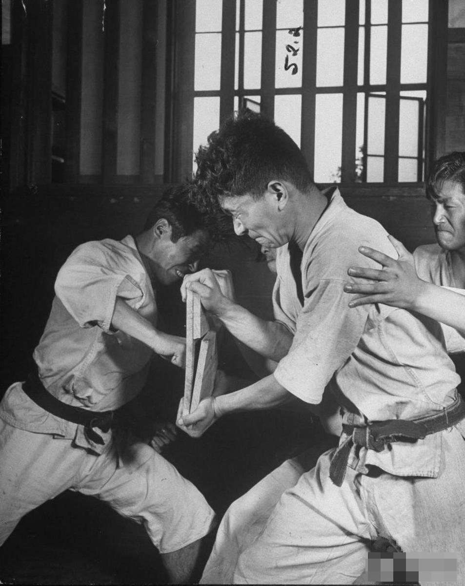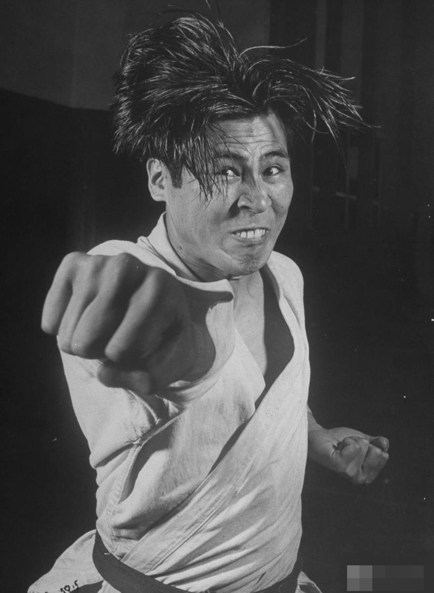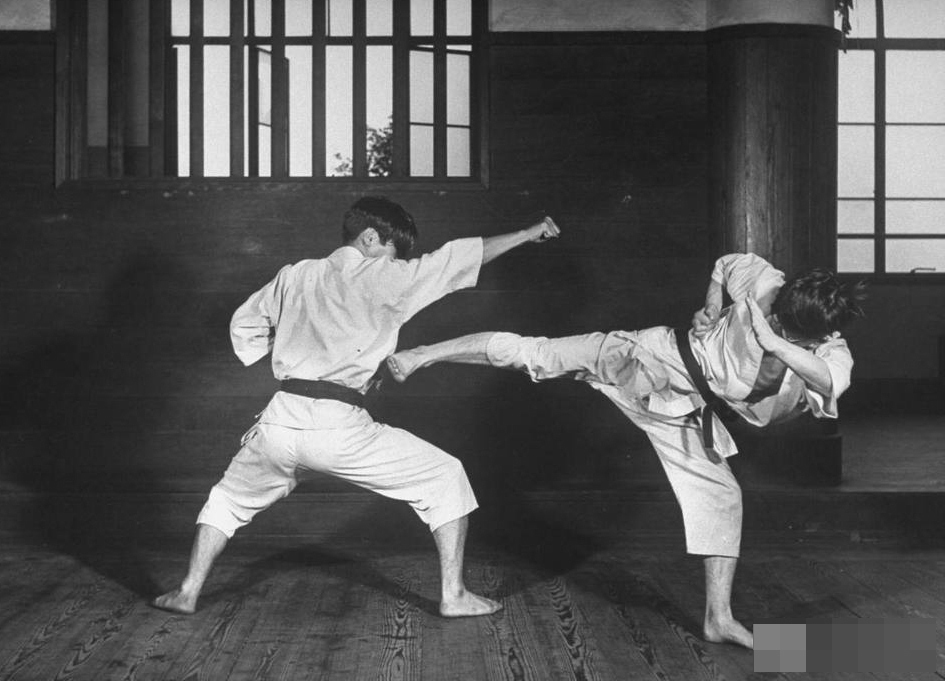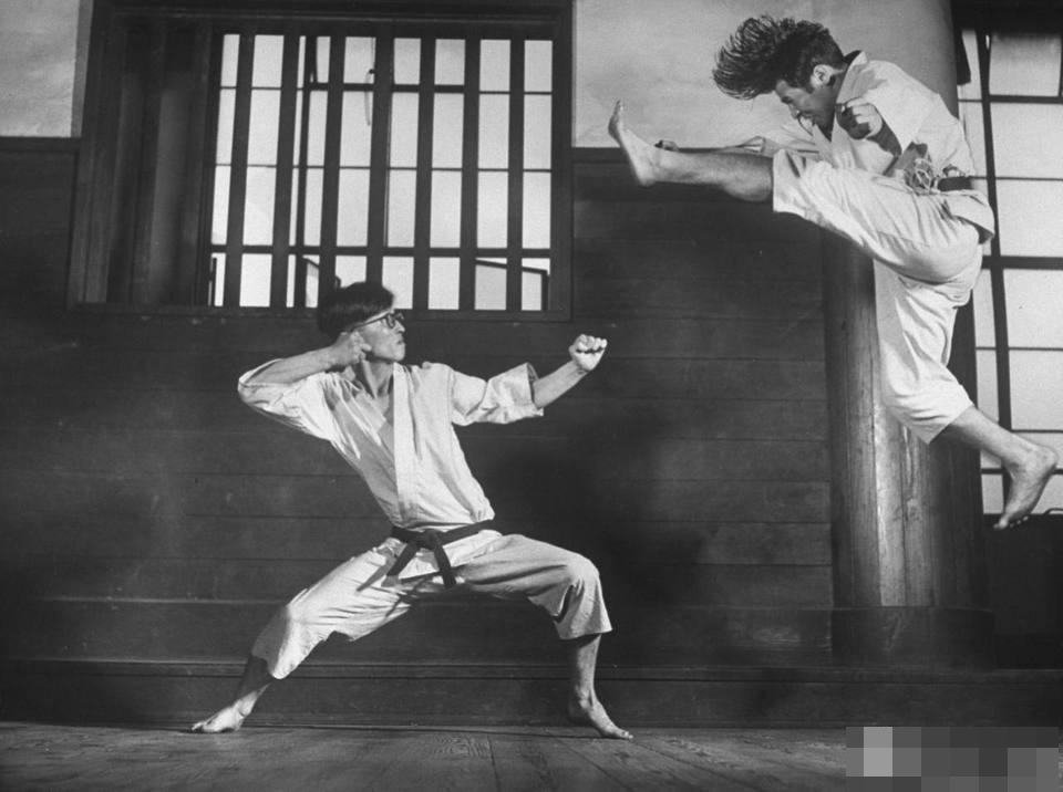空手道是日本武道和琉球的唐手结合而形成的一种近身格斗术,日本人喜欢把自己称为空手道的发源地,他们认为空手道是世界上最厉害的格斗术。这组1947年空手道老照片就很好的展示出了这一点,图为一名空手道选手飞身至空中,借助落下时的巨大力量打击对方。