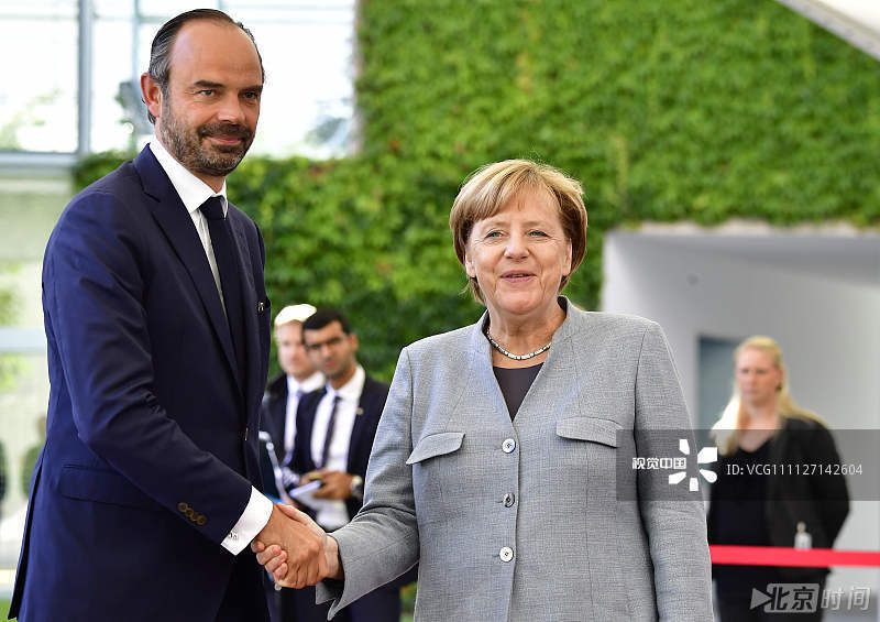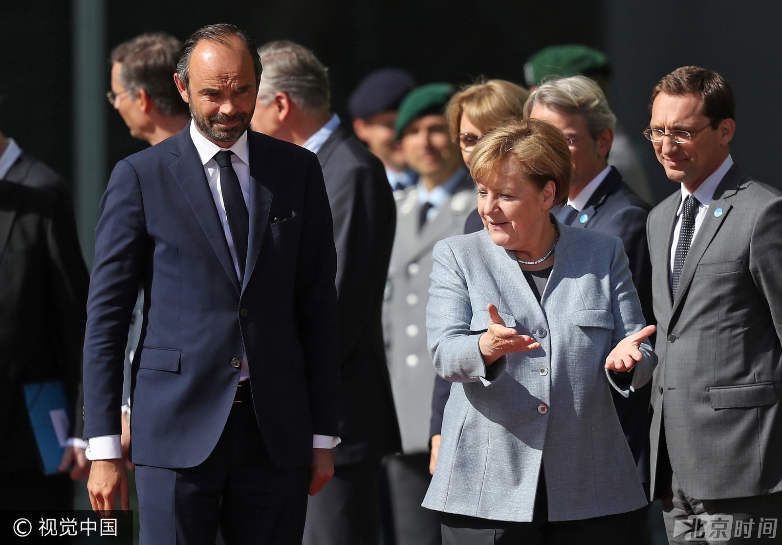 当地时间2017年9月15日,德国柏林,法国总理爱德华·菲利普出访德国,德总理默克尔出席欢迎仪式。