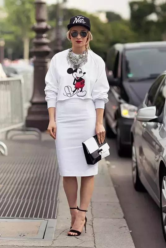 最后博主搬出我们的实力爱豆,今天的两大件都上了,太阳镜+棒球帽凹出all white风格,上衣的米老鼠图案可爱俏皮,暖暖一颗少女心。一字带高跟凉鞋女神范儿,脖颈的大号配饰吸睛有范儿。