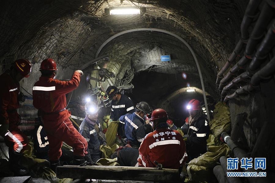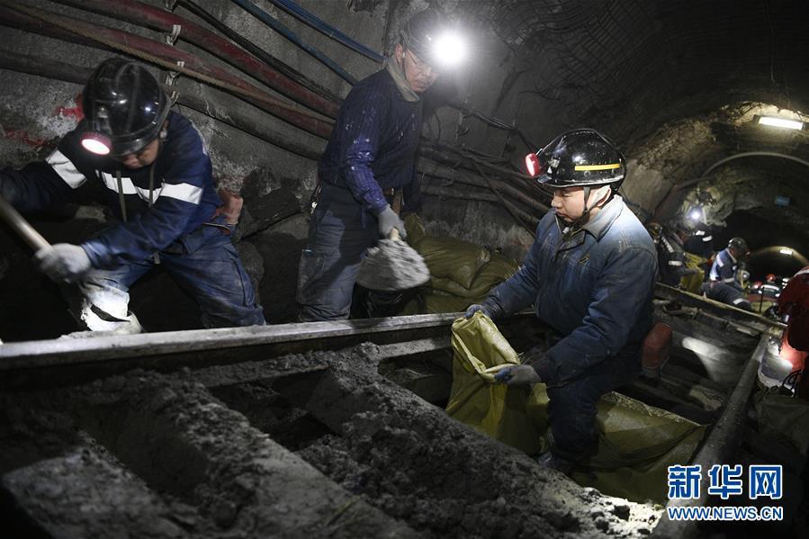 春节期间,宁夏灵武市神华宁煤集团一支由党员先锋队员等组成的突击队在清水营煤矿井下800米处进行维修作业,保障出煤进度,在岗位上度过节日。