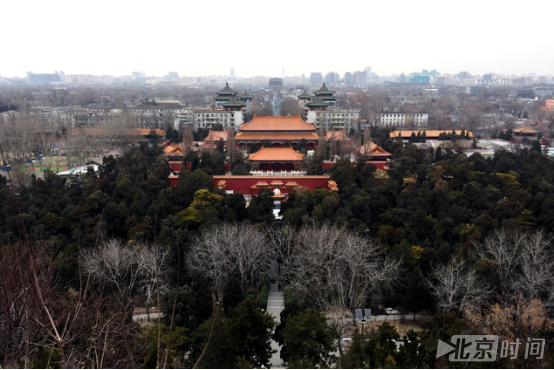 站在景山万春亭上,王可第一次惊讶于古城北京的恢弘——从这个北京城曾经的最高点向南望去,是满目金黄、气势恢弘的故宫;向北,在一片翠绿的松柏林后,则是金顶的寿皇殿和翠瓦的钟鼓楼。